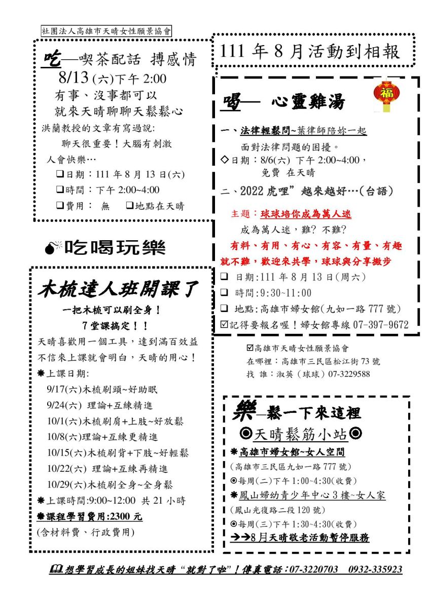 天晴8月活動~吃茶配話一起來